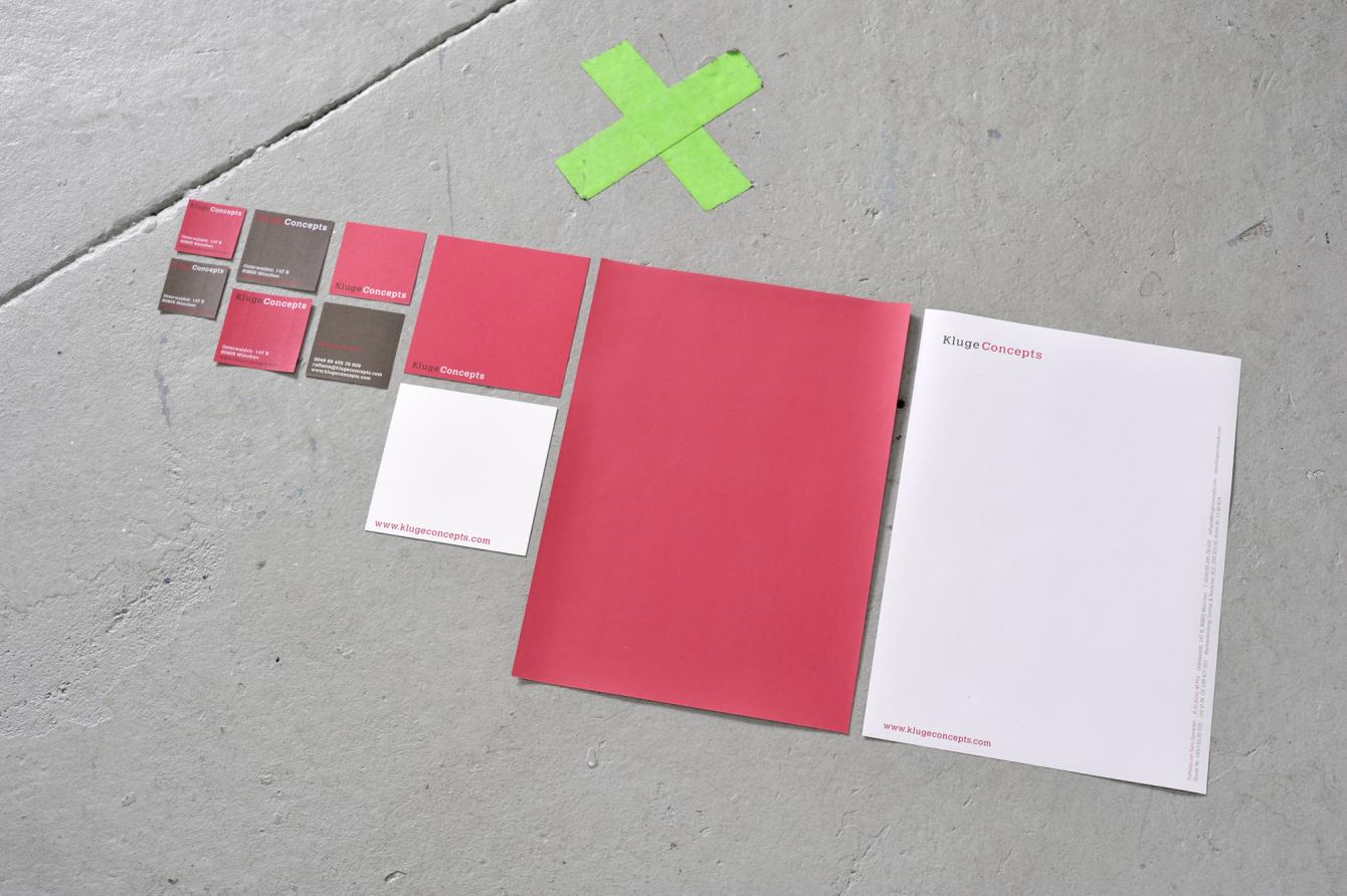 Stationery, including letterheads (printed on both sides), square compliment cards, business cards and envelope stickers.