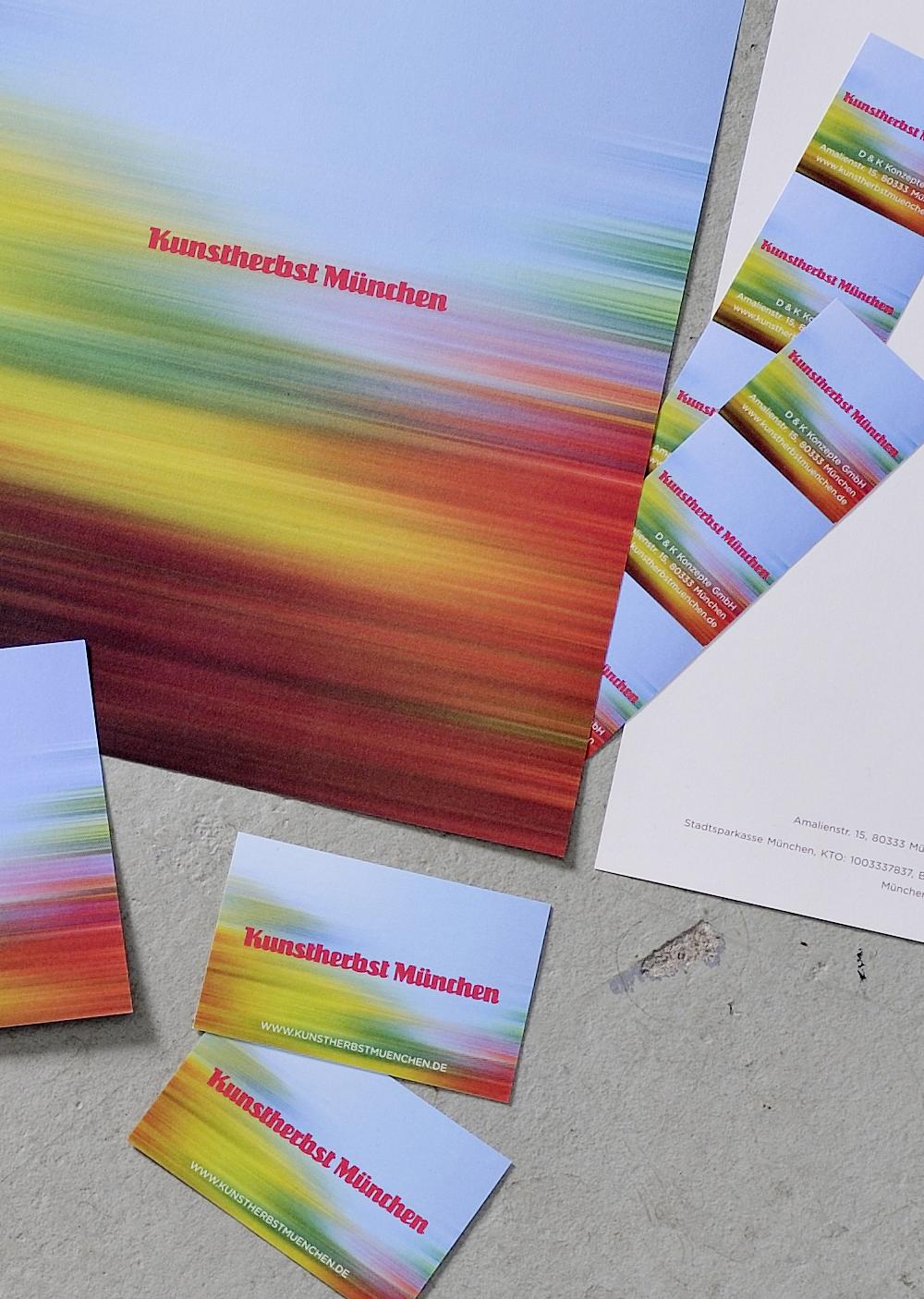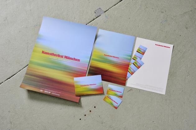 Design of a corporate identity for Kunstherbst München, an online portal bringing together the autumn highlights of Munich's art scene, from logo to posters, postcards, stationery and website.